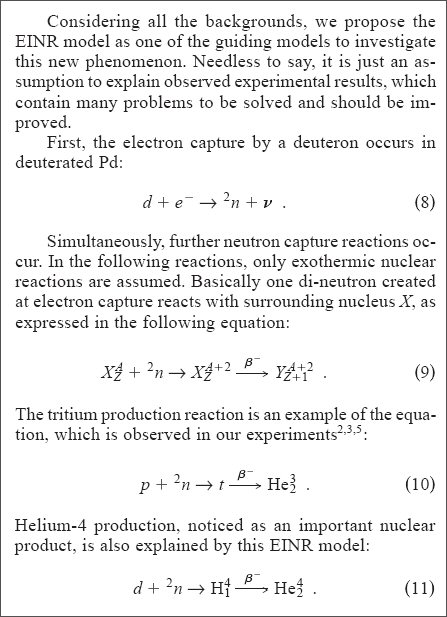4. Iwamura, Y., Itoh, T., Gotoh, N., and Toyoda, I. "Detection Of Anomalous Elements, X-Ray, And Excess Heat In A D2-Pd System And Its Interpretation By The Electron-Induced Nuclear Reaction Model," Fusion Technology, Vol. 33, p. 476-492 (July 1998)