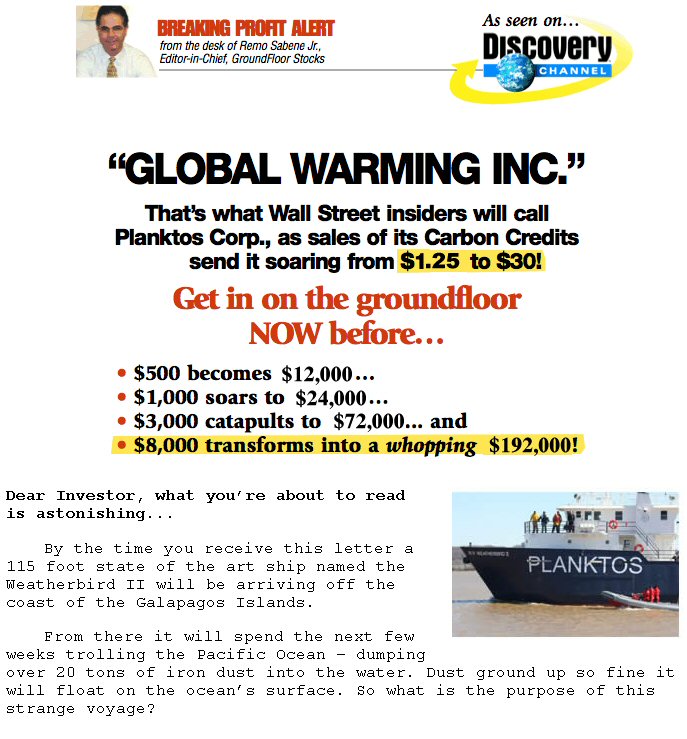 | Environmental Groups: Planktos Made False Claims to SEC (Common Dreams) Sept. 21, 2007 |