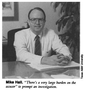 Through the end of May, A&M still had mounted no formal inquiry into the Bockris tritium data, although interviews with members of the administration showed that they had their own concerns. Hall reflected on the need to have a policy that allows for a confidential inquiry into possible fraud--without demanding a Grand Inquisitor. "That's been part of the problem--there's a very large burden on the accuser. We have to find someone who is willing to put his own reputation on the line."