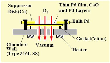 Just before starting the permeation, with the chambers sealed, they test to make sure that no other elements are on the surface of the multilayered substrate except the given element (for example, cesium or strontium) and the palladium and calcium oxide that is present on the substrate.