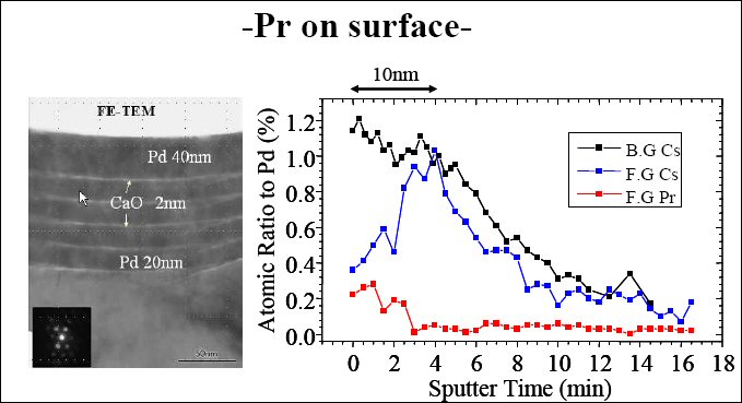 In the work with cesium ⇒ praseodymium, for example, no praseodymium is present on the surface of the multilayered substrate at the beginning of the experiment, as shown by the in-situ XPS measurements.