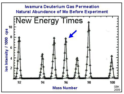 In their set of experiments with strontium as the given element and molybdenum as the target element, they saw very clear results of apparent LENR transmutation: unexpected isotopic abundances. The differences are shown below.