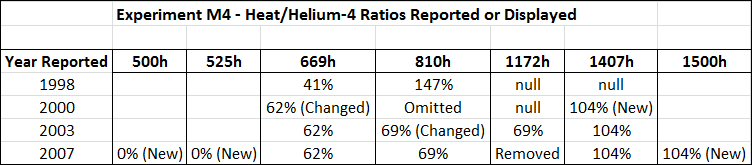 There are other discrepancies between the 1998 report and McKubre's later presentations of experiment M4, but the ones I've shown above are the easiest to follow.